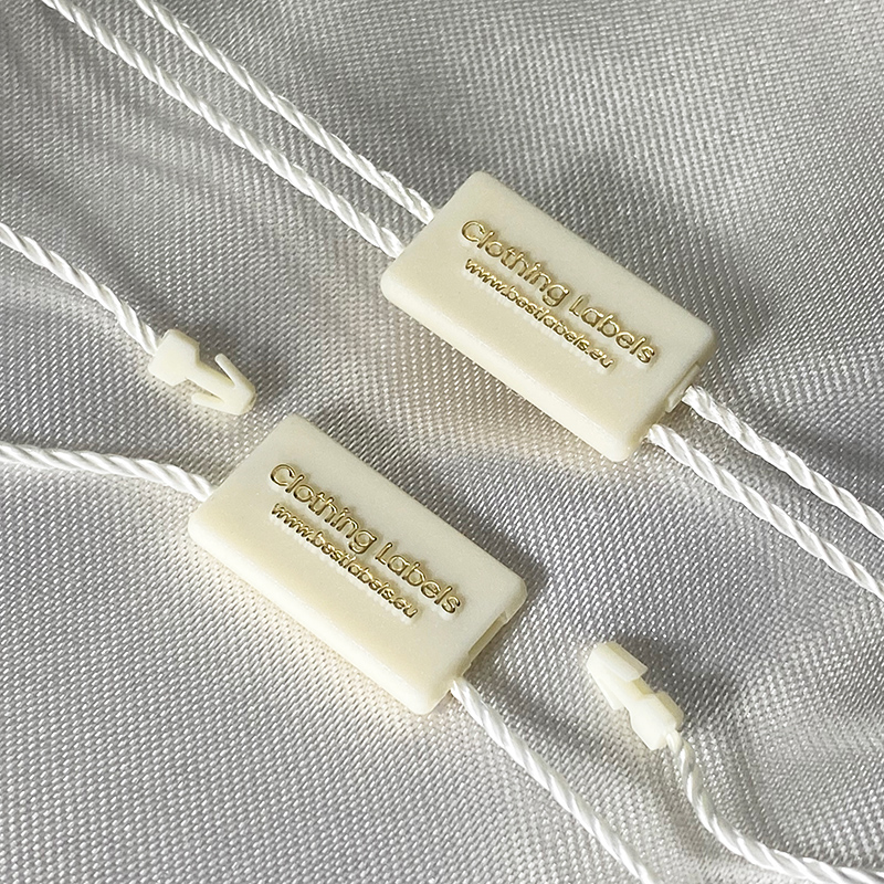 Egyszerű téglalap alakú műanyag plomba ST-M188, szöveggel, brandnévvel, márkával, weboldallal stb., valamint logóval/emblémával személyre szabva, bármilyen textil típusú termékhez használható, ruhához, cipőhöz, táskához. Ez a plombamodell kiváló minőségű anyagokból készül, a szakterületen belül a legfejlettebb technológiát felhasználva.