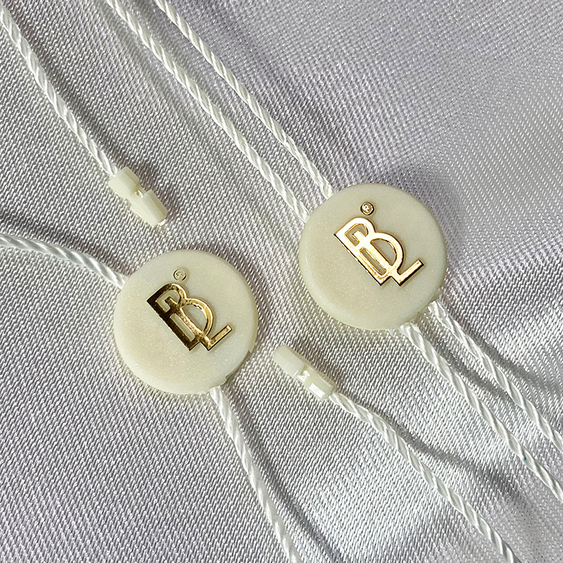 Kör alakú nagyon szép és elegáns műanyag plomba ST-M35, két oldalon személyre szabva a brand nevével vagy emblémával, ideális ruhákhoz, cipőkhöz, táskákhoz, stb. Ez a plombamodell kiváló minőségű anyagokból készül, a szakterületen belül a legfejlettebb technológiát felhasználva.
