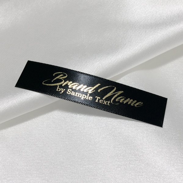 Szövetre nyomtatott textil címke ezüst betűkkel, Fashion Style, ruhákhoz és különféle ruhadarabokhoz. Ezt a textilcímke-modellt a textilhordozókra való digitális nyomtatás területén a legfejlettebb technológiák felhasználásával gyártják. A címkéket speciális szaténra nyomtatják hőátadási módszerrel, lenyűgöző nyomtatási minőséggel és nagy mosóképességgel. A nyomtatott címkék automatikusan levágásra kerülnek a bemutatott méretek szerint.