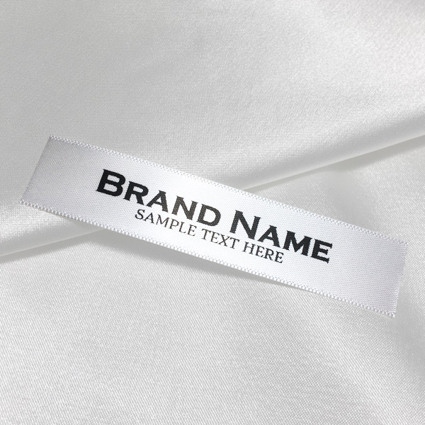 Szatén textiltartón egyedi szövegekkel nyomtatott textilcímke, vágni a bemutatott méretek szerint.