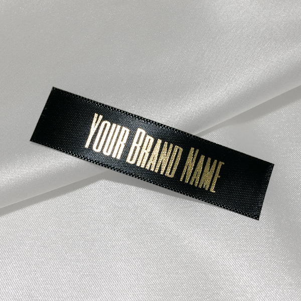 Szatén textiltartón egyedi szövegekkel nyomtatott textilcímke, vágni a bemutatott méretek szerint.