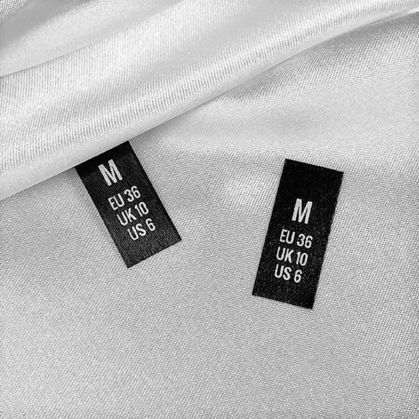 Egyedi címkék méretekkel, ruhák vagy különféle ruházati cikkekre felvarráshoz, megrendelésre kiváló minőségű textil anyagból. Ezt a textilcímke-modellt a textilhordozókra való digitális nyomtatás területén a legfejlettebb technológiák felhasználásával gyártják. A címkéket speciális szaténra nyomtatják hőátadási módszerrel, lenyűgöző nyomtatási minőséggel és nagy mosóképességgel. A nyomtatott címkék automatikusan levágásra kerülnek a bemutatott méretek szerint.